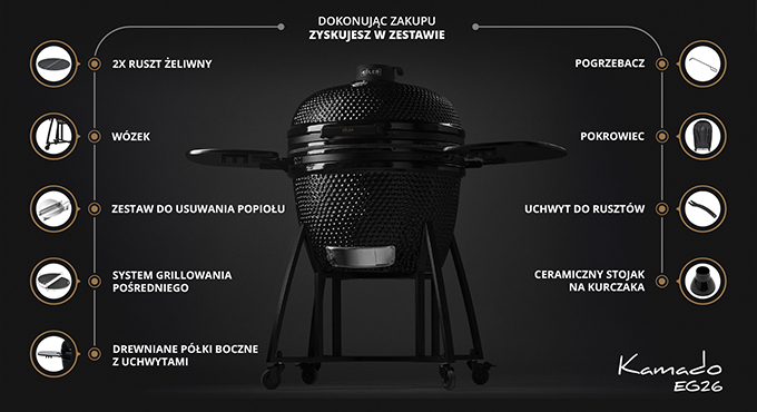 Настоящий титан впереди вас! Вот керамический гриль Köler Kamado EG26 с просторной и чрезвычайно просторной решеткой. Его сердце - массивный котел с косвенной системой гриля, способной разместить многие гамбургеры, стейки, ребра, килограммы колбас, птицы, рыбу, овощи и морепродукты. И каждое из блюд будет окружить идеальные условия для нее.