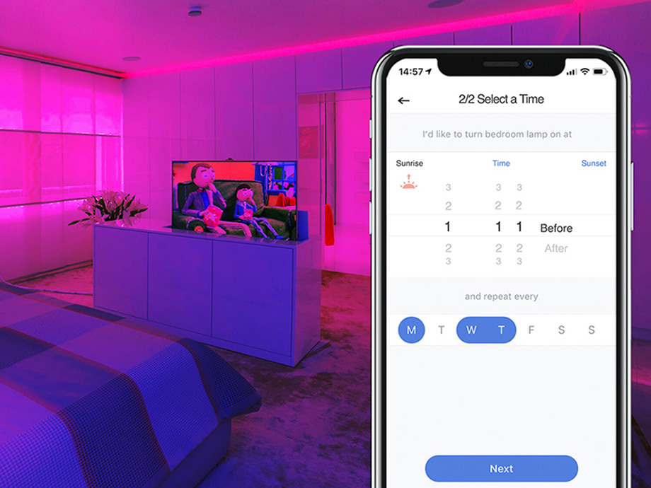Установка ленты происходит быстро и без проблем, а ее 5-метровая длина дает вам большой простор для творчества. Оберните его вокруг края стола, подсветите полки, создайте волшебную рамку вокруг телевизора или добавьте атмосферу на кухню. Устройство работает без необходимости использования дополнительного хаба — все, что вам нужно, это подключение к Wi-Fi и немного творчества.