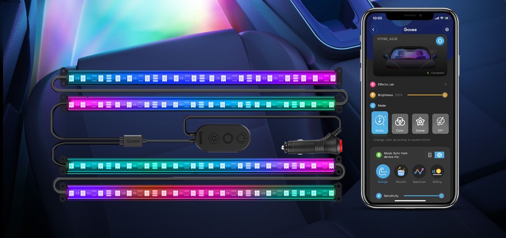 Теперь вы можете включить свою любимую музыку и насладиться одним из многих захватывающих музыкальных режимов, которые заставит вас Свет начнет пульсировать и перемещаться к ритму звуков Встроенный микрофон в световом поясе RGBIC позволяет реагировать на звук, что позволяет создавать незабываемую атмосферу и очень весело на каждой дороге.