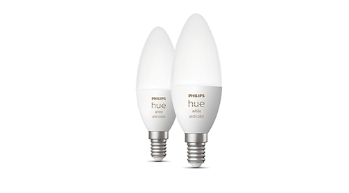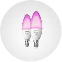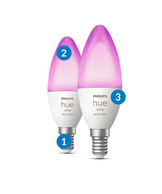 моделі Philips Hue White and Colour Ambiance у вигляді свічки підходять для стандартних патронів E14.;